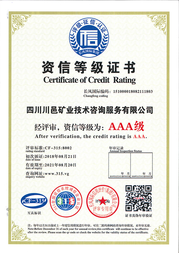 資信等級證書